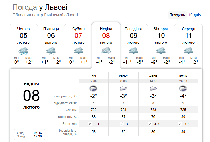 Погода у Львові 7 лютого / © скриншот