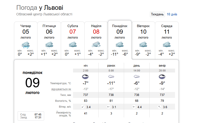 Погода у Львові 9 лютого / © скриншот