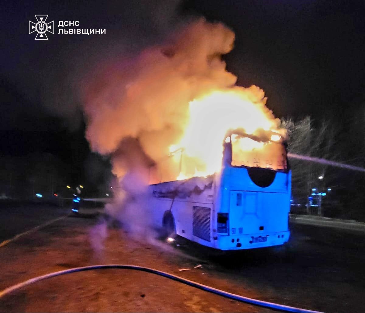 Згодом у ДСНС уточнили, що коли рятувальники прибули на місце, автобус уже був повністю охоплений вогнем. Пожежу вдалося ліквідувати о 22:14.