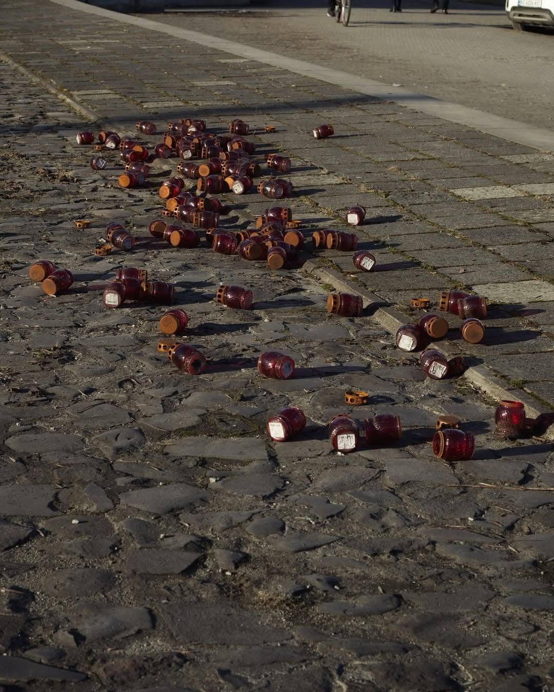 Жінка розкидала лампадки біля виставки у Львові / © Меморіальний музей тоталітарних режимів «Територія Терору»
